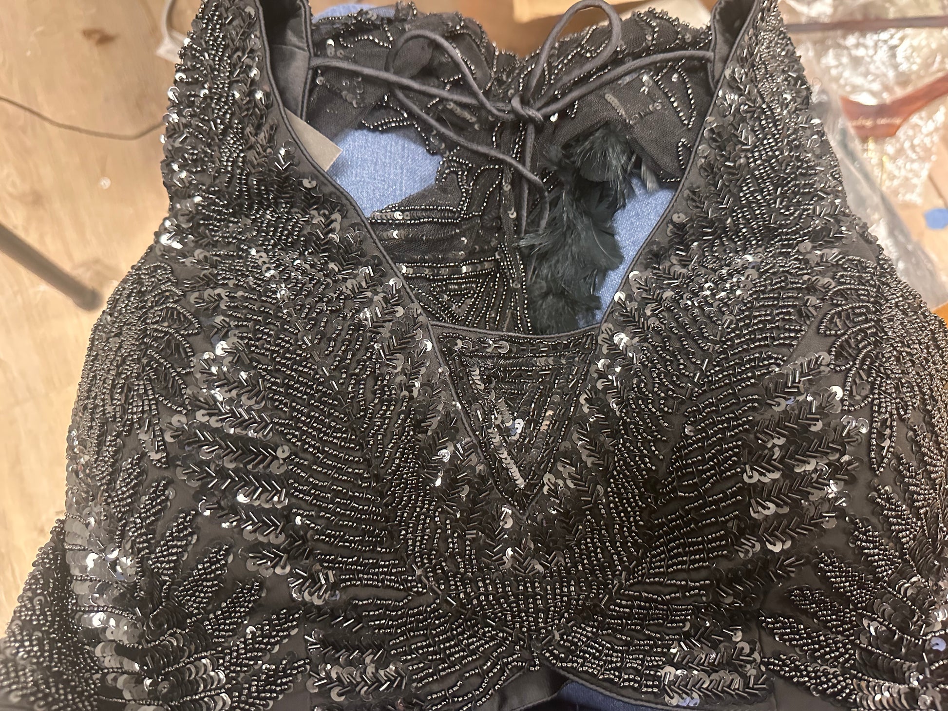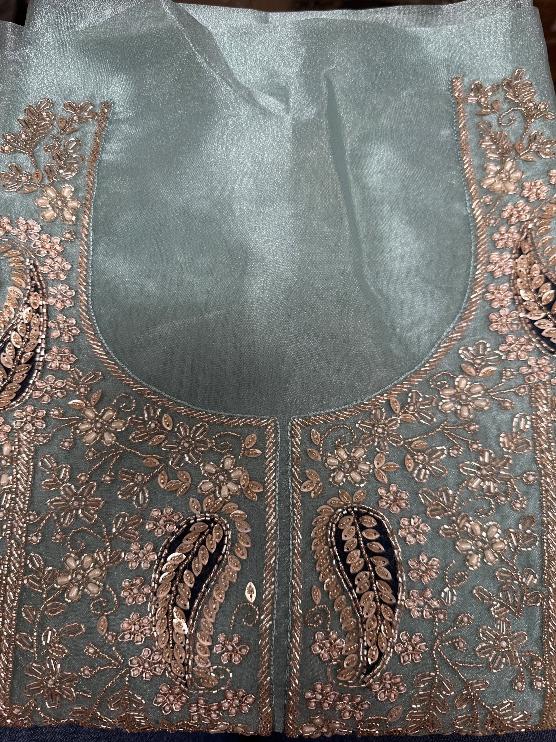 Featuring intricate peacock motifs, mirror, bead, and sequin embroidery, perfect for weddings, receptions, and festive events.