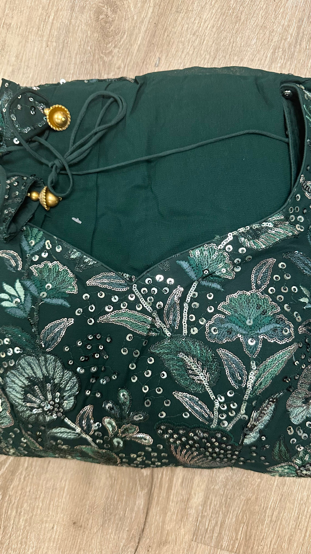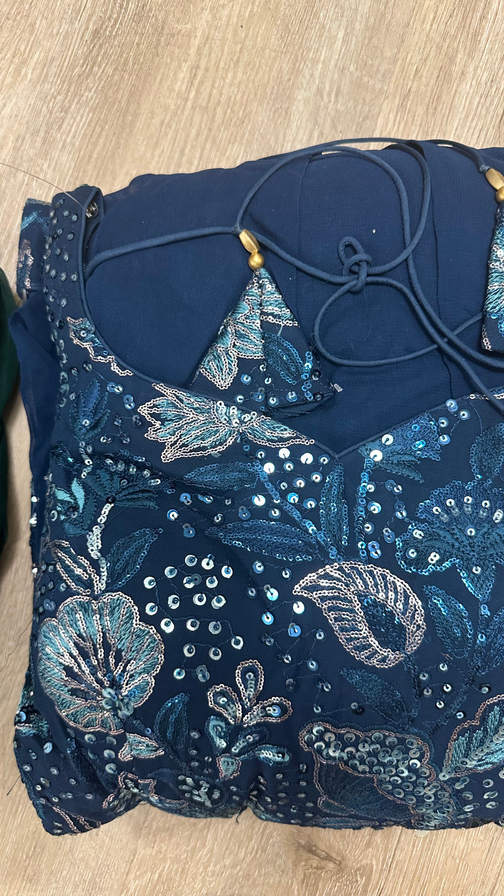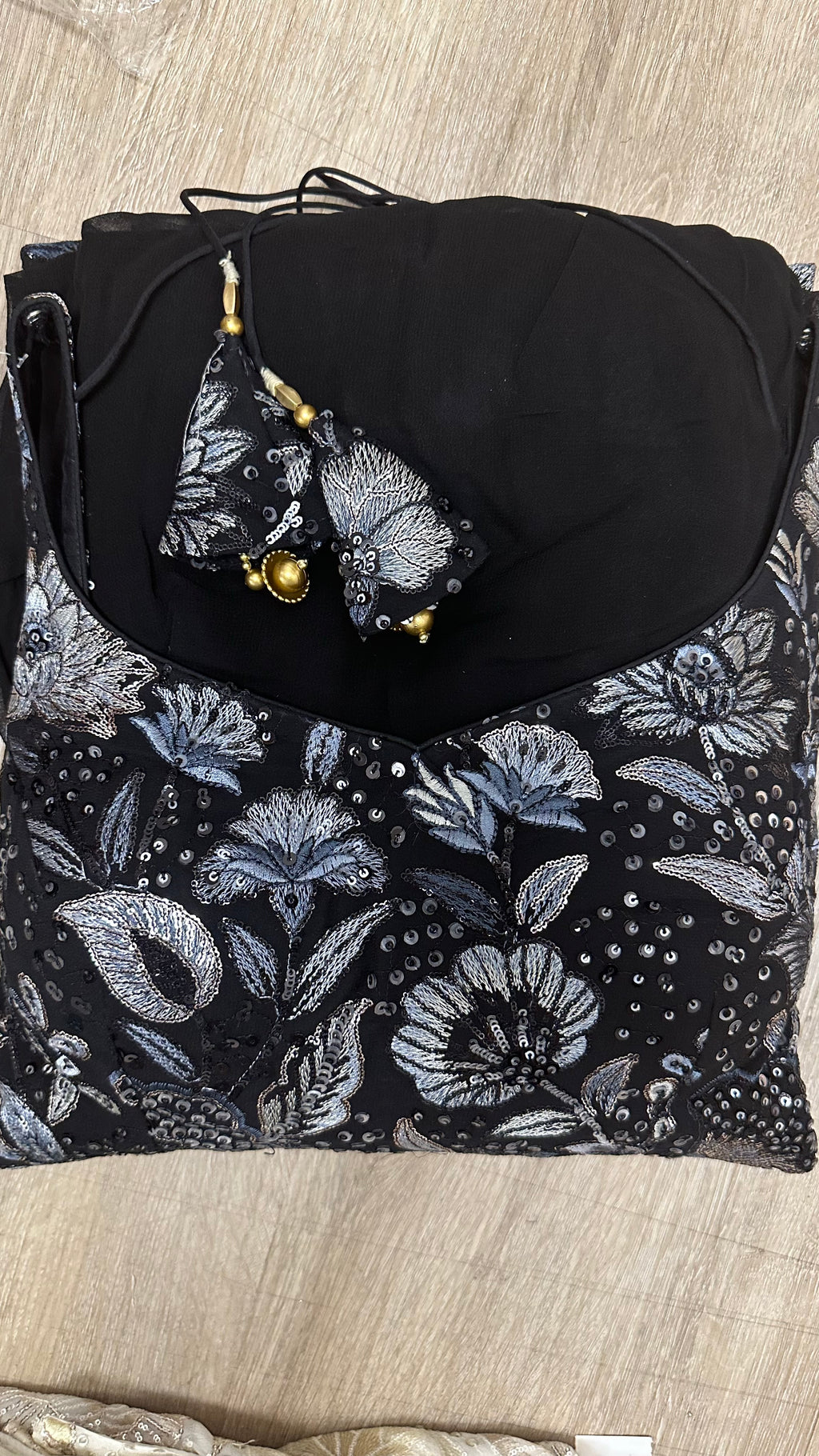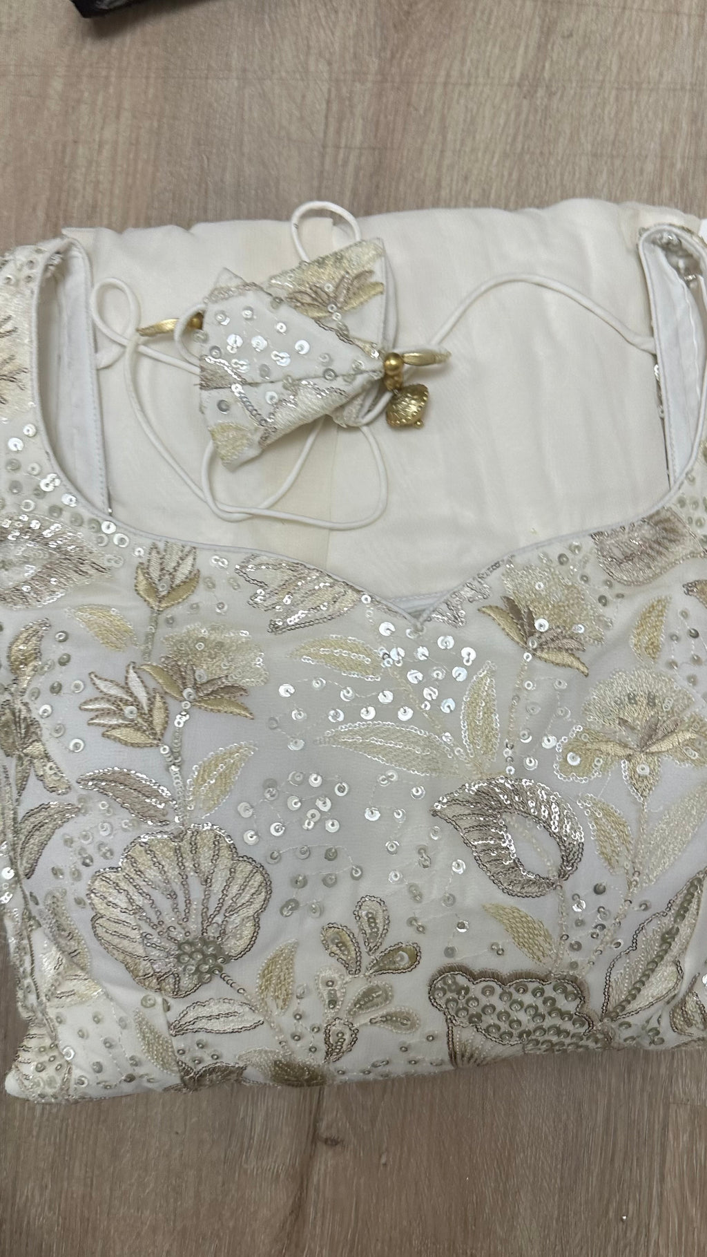 - Lace, sequins, and handwork details may vary.