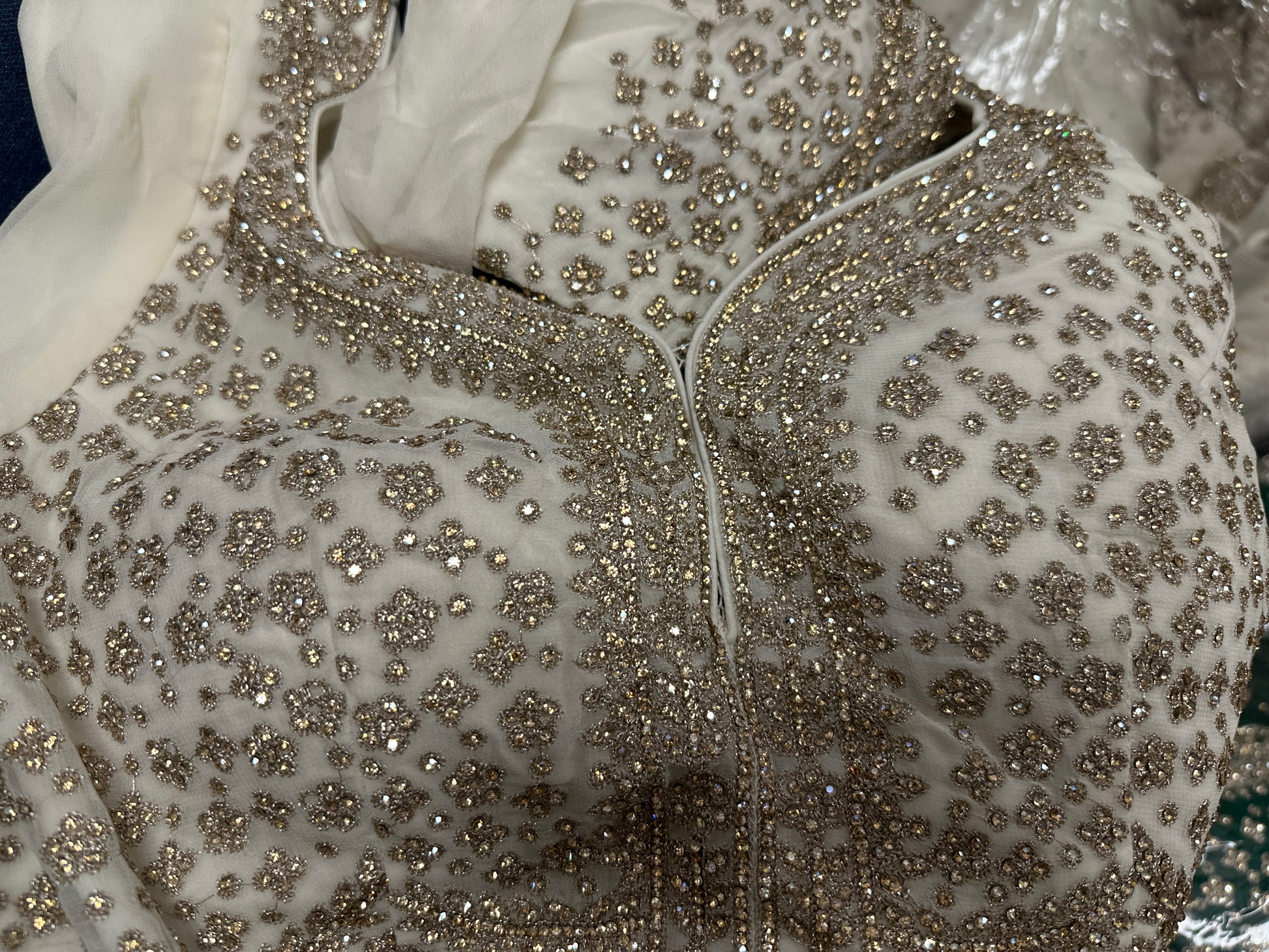 Type of Work: Intricate stone embellishments set against a base of fine georgette for subtle sparkle